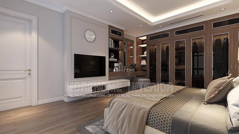 Tủ quần áo phòng ngủ gỗ công nghiệp acrylic trắng tạo thêm sự tiện nghi cho không gian nơi đây