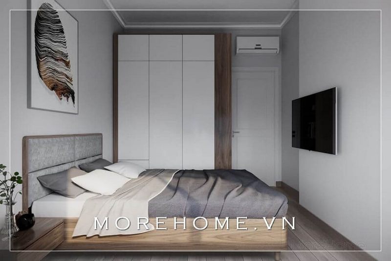 Tổng thể màu sắc chủ đạo tương phản trắng - đen từ tủ gỗ tới nội thất đem lại nét hiện đại cho phòng ngủ căn hộ