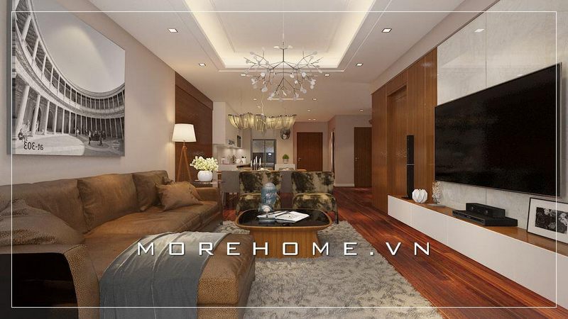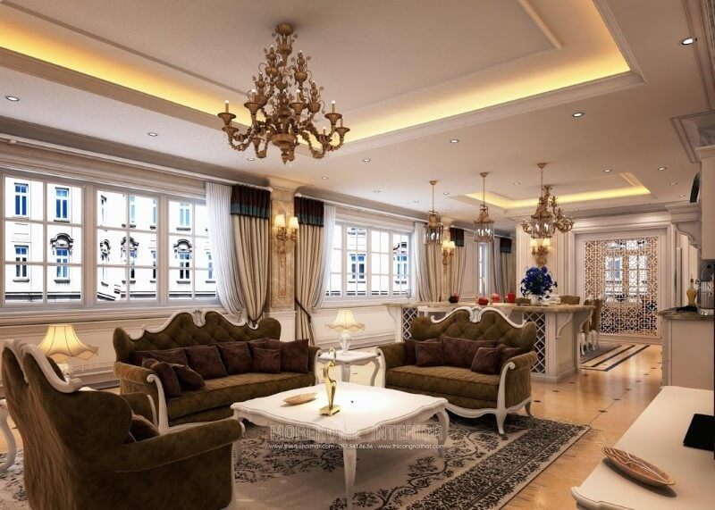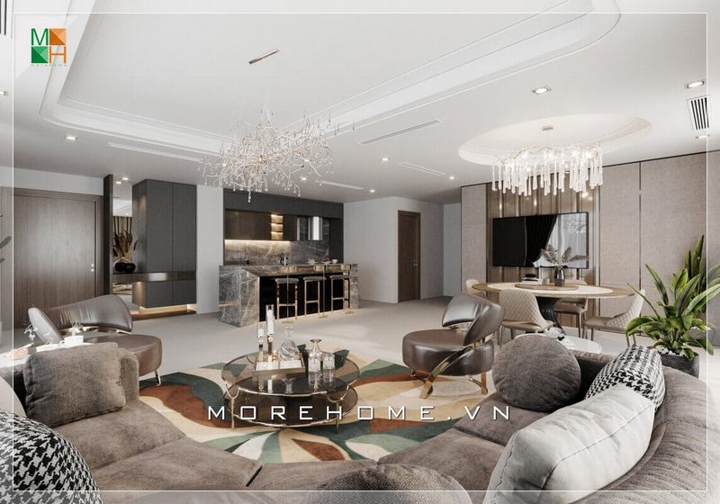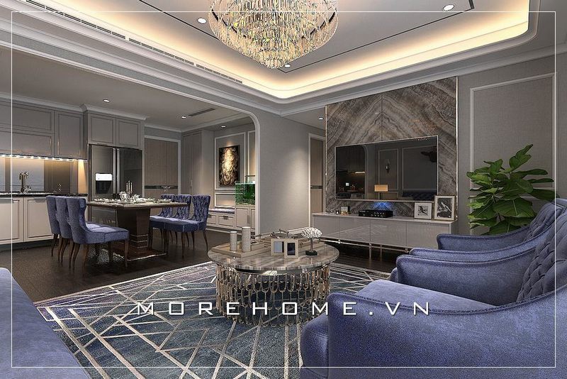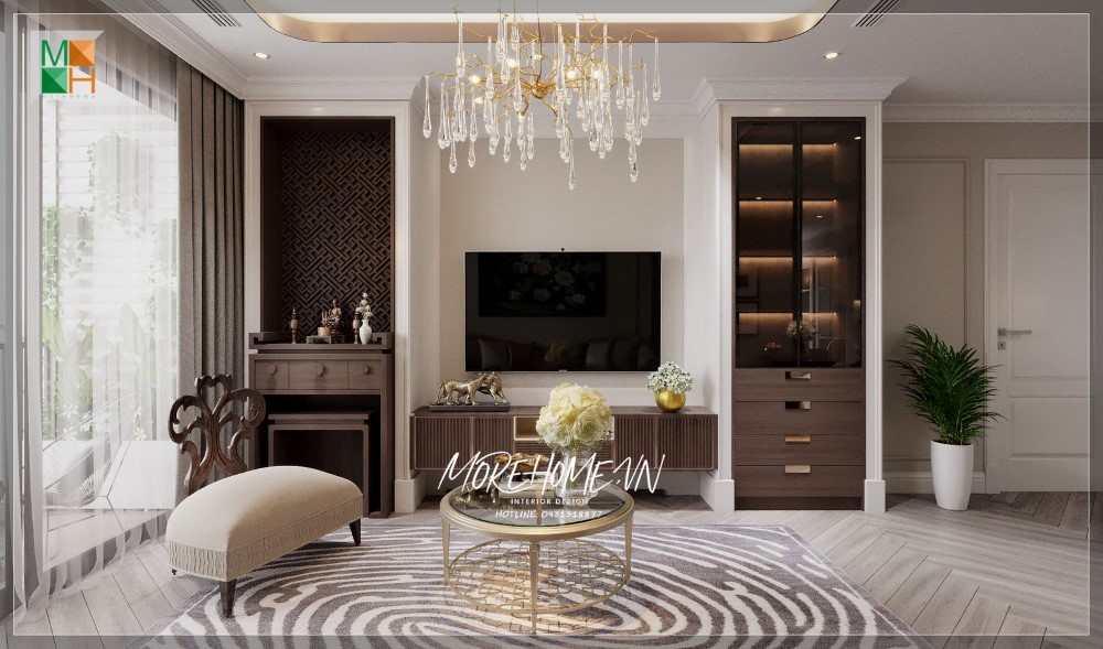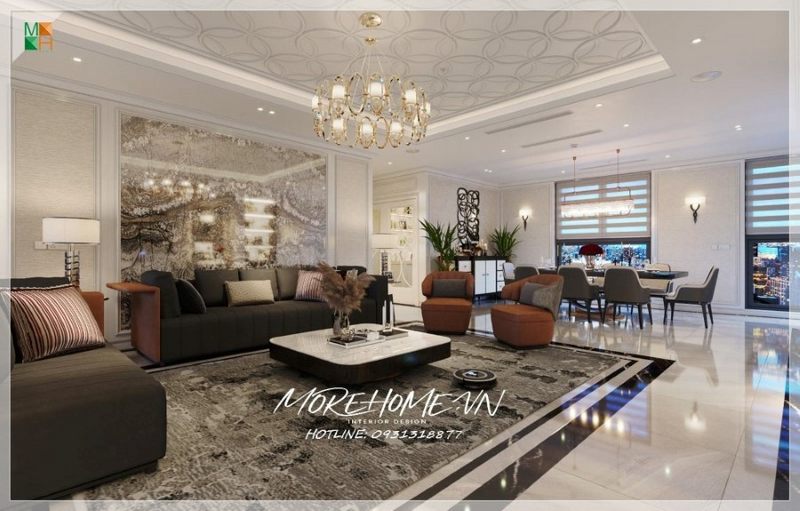 Thiết kế phòng khách chung cư cao cấp theo phong cách tân cổ điển mang đến không gian ấm cúng, sang trọng cho các thành viên trong gia đình