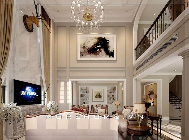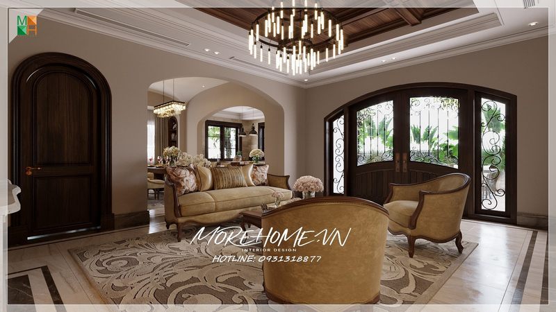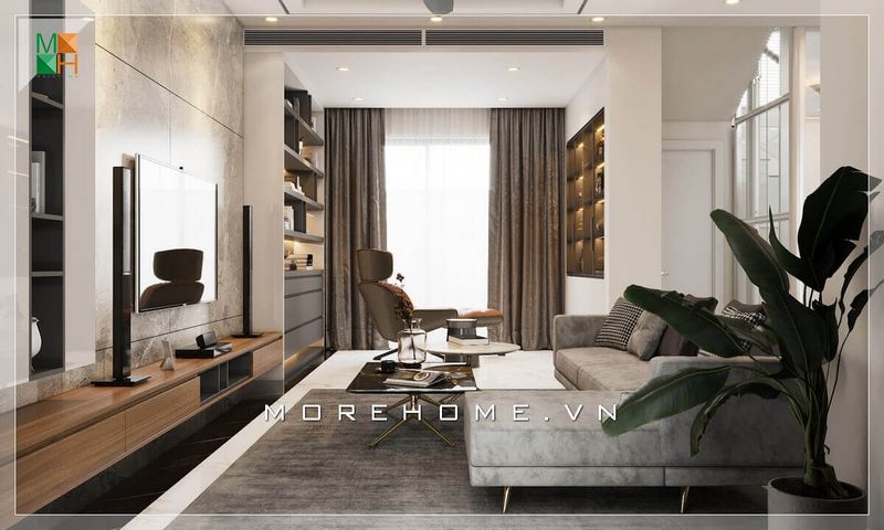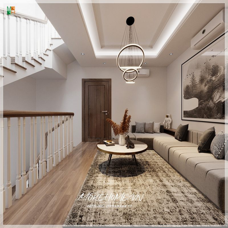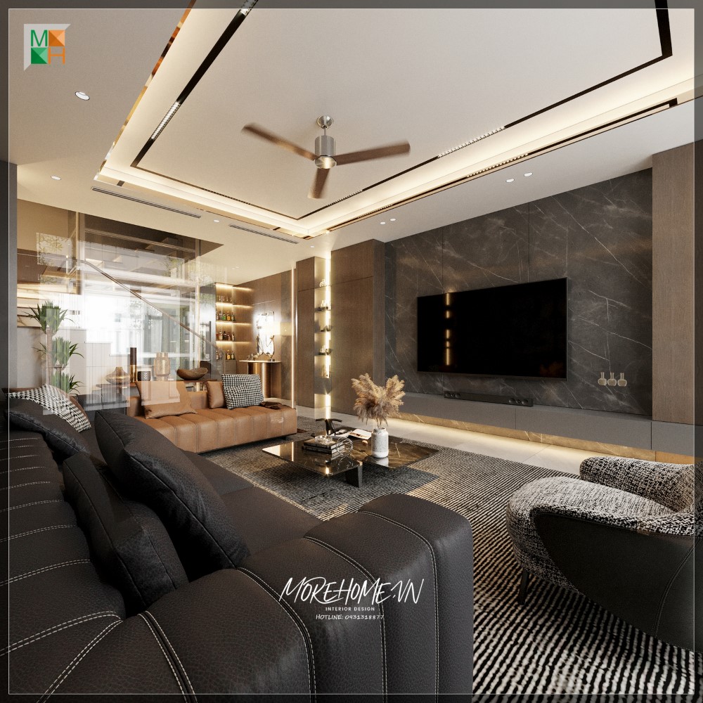 Với phòng khách biệt thư, nhà phố không gian đang được thi công theo bản thiết kế của các kiến trúc sư Morehome phòng được trang trí đầy đủ tiện ích sử dụng, gặp gỡ bạn bè và người thân.
