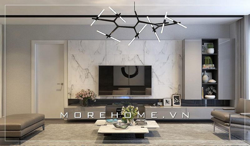 Với diện tích hạn chế của những căn hộ chung cư, việc lựa chọn mẫu kệ ti vi hiện đại nhẹ nhàng, đơn giản giúp cho không gian thêm rộng và thoáng hơn