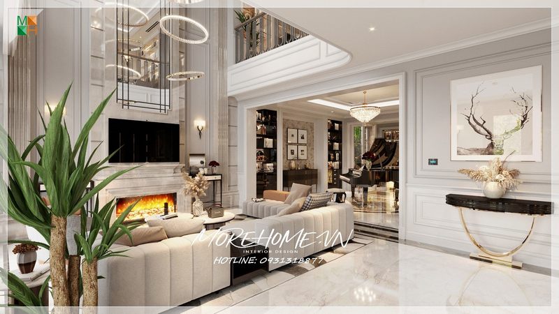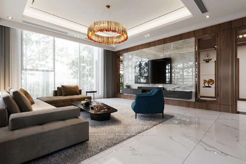 Thiết kế nội thất phòng khách biệt thự phong cách hiện đại sang trọng và đẳng cấp