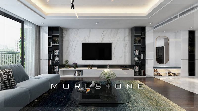 Đá ốp vách tivi vân mây màu xám trang trí tô điểm cho không gian điểm nhấn, sự sang trọng, cao cấp cho không gian