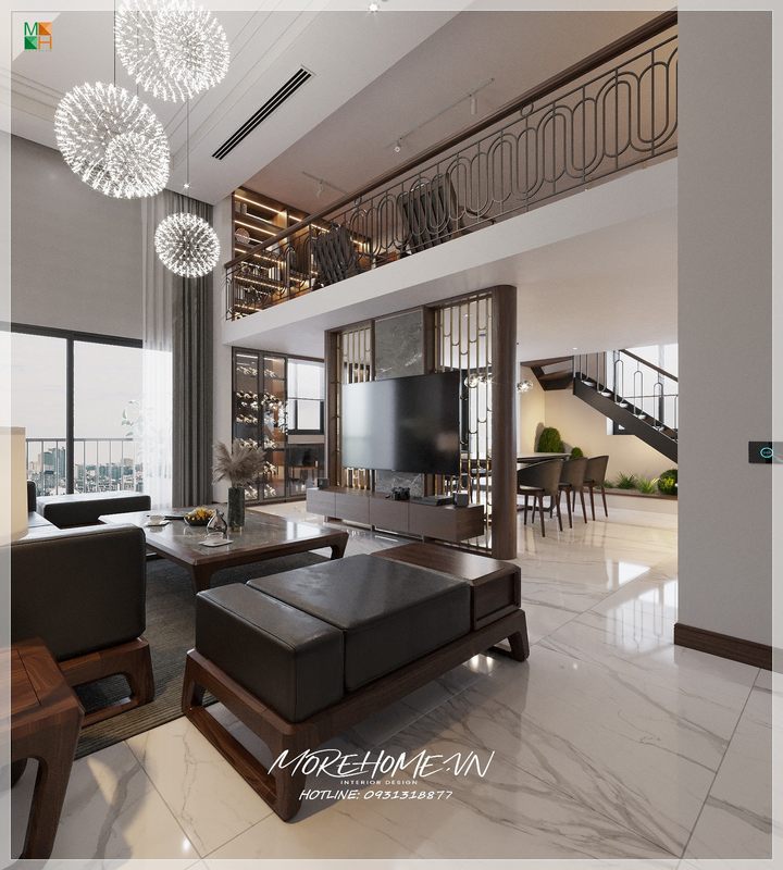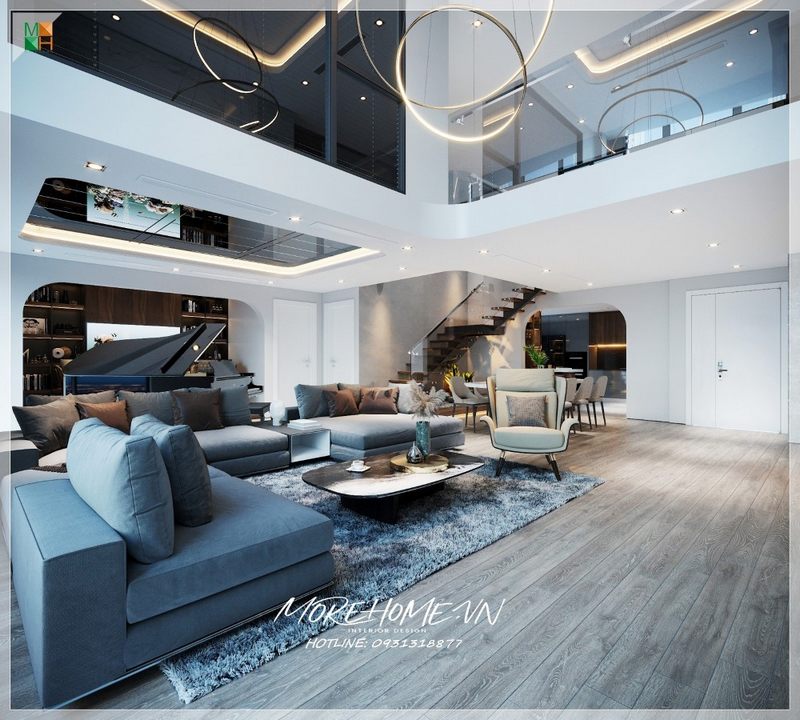 Mê mẫm với mẫu thiết kế phòng khách thông tầng mang đậm phong cách hiện đại, sang chảnh khẳng định đẳng cấp gia chủ.
