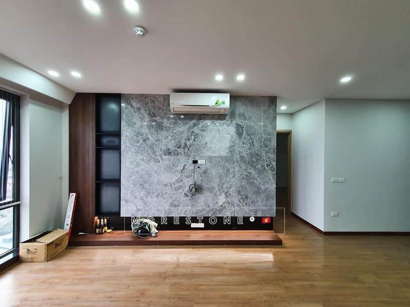 Thi công hoàn thiện vách đá ốp tường phòng khách cho chung cư vinhomes nguyễn chí thanh, quận đống đa, hà nội